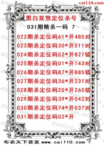 黑白双煞3d2020年031期今日杀码推荐(