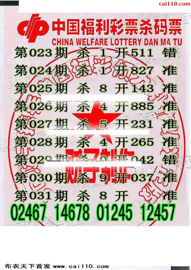 2020年031期福彩3D蓝宝石杀码图谜(原