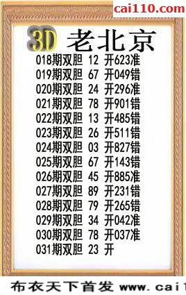 真老北京20年031期福彩3D给胆图