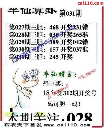 福彩3D20年031期半仙算卦最新三d图迷
