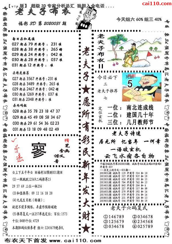福彩20年031期老夫子布衣最新3d图迷