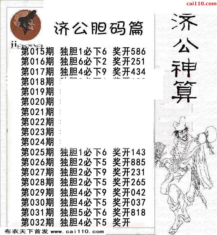 济公胆码3d2020年032期鬼谷神算图迷