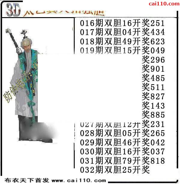 双胆乾坤20年032期福彩3D定胆画谜