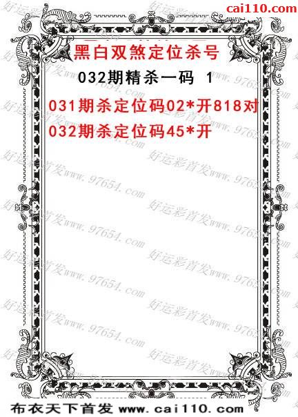 黑白双煞3d2020年032期今日杀码推荐(
