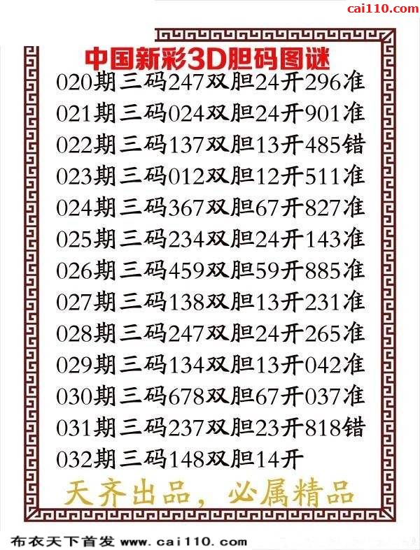 2020年032期福彩3D蓝宝石杀码图谜(原