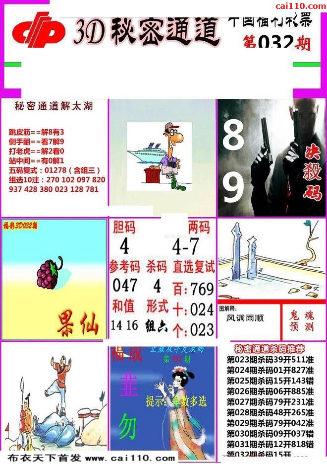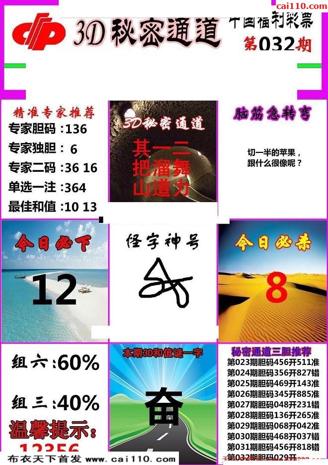 福彩3d20032期秘密通道胆码两版3d图谜