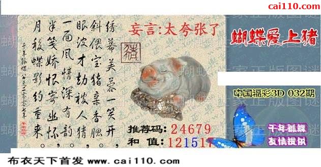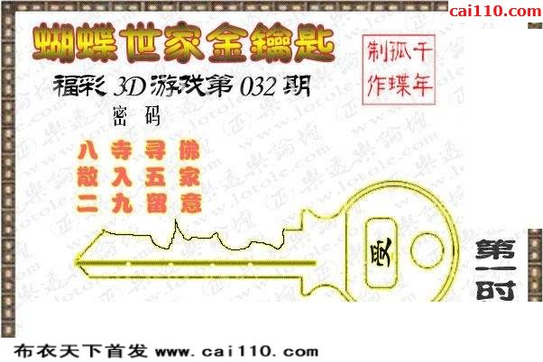 2020年032期蝴蝶世家今日三D迷语彩图