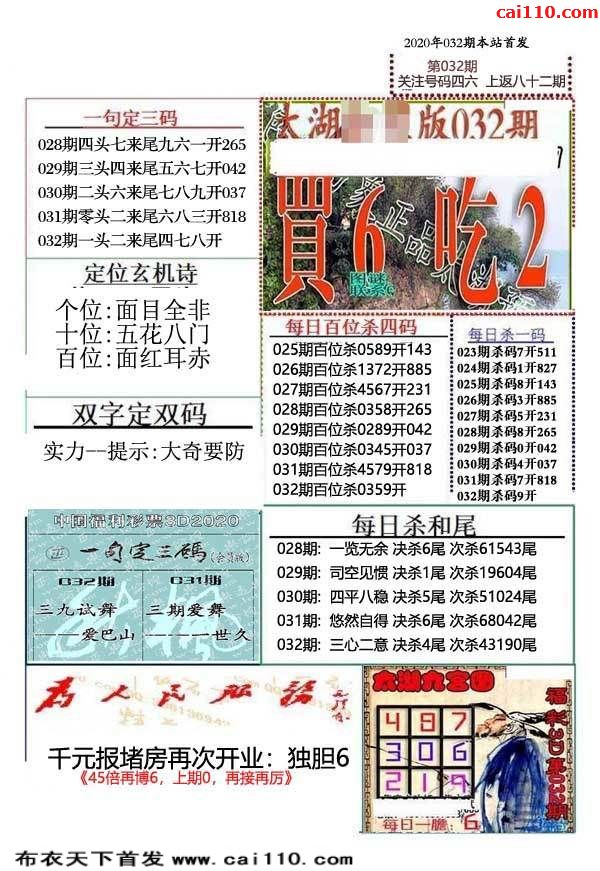 天齐杀码20032期福彩3d原创总汇 杀:3