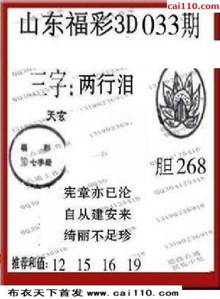 福彩3D2020年033期真布衣天下晚间六版