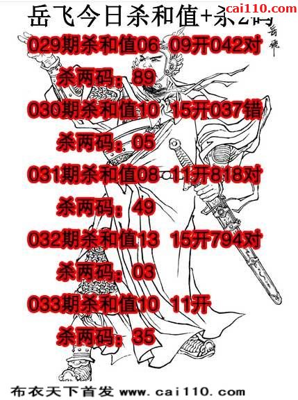 岳飞杀和20年033期+3D绝杀两码(原创)