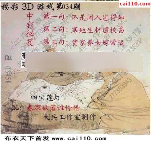 秀才老汉20年034期福彩仕女送胆3d画谜