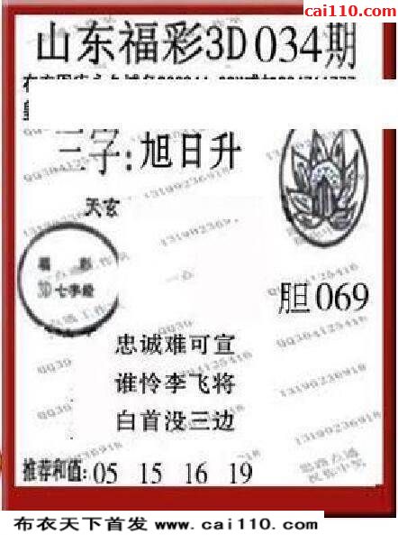 福彩3D2020年034期真布衣天下晚间六版