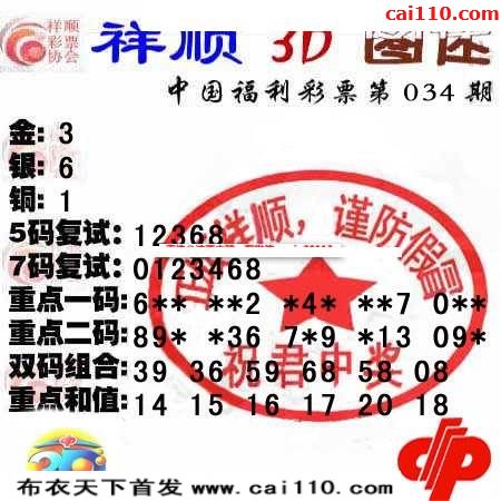 福彩3D2020年034期祥顺最新三d图迷