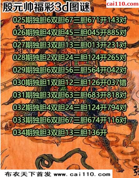 3D殷元帅20年034期布衣天下胆码图(原创)