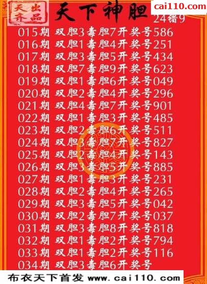 天下神胆3d20年034期福彩双胆图