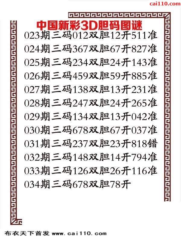 福彩3d20034期秘密通道胆码两版3d图谜