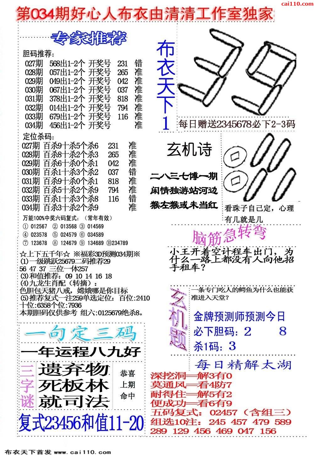 20年034期福彩3d本站原创布衣六版