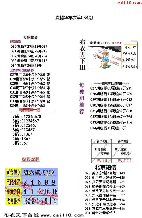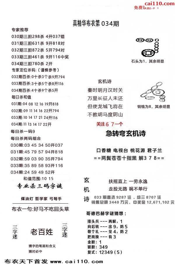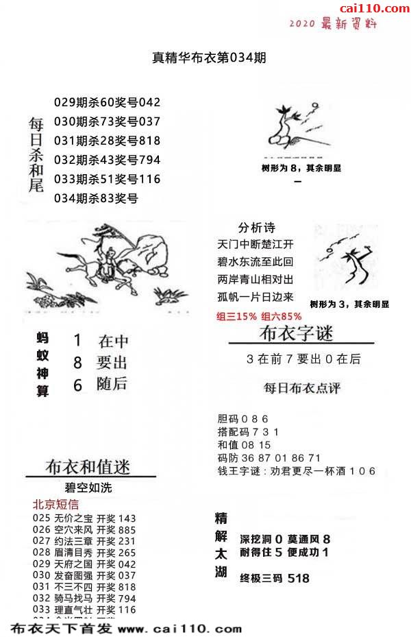 真精布衣2020年034期3d正版布衣12345