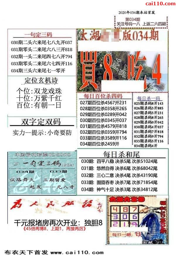 精准布衣20034期福彩皇帝今期3d彩报图