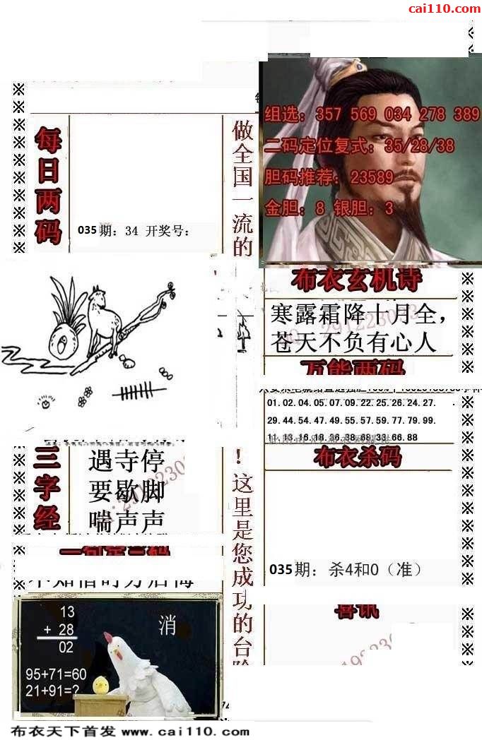 2020年035期福彩3d早版布衣最新三d图