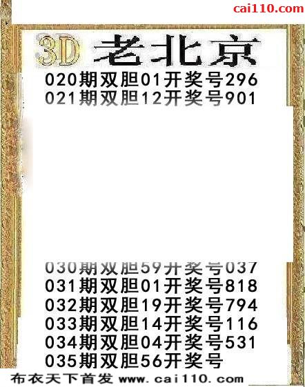 3D老北京20年035期福彩双胆图