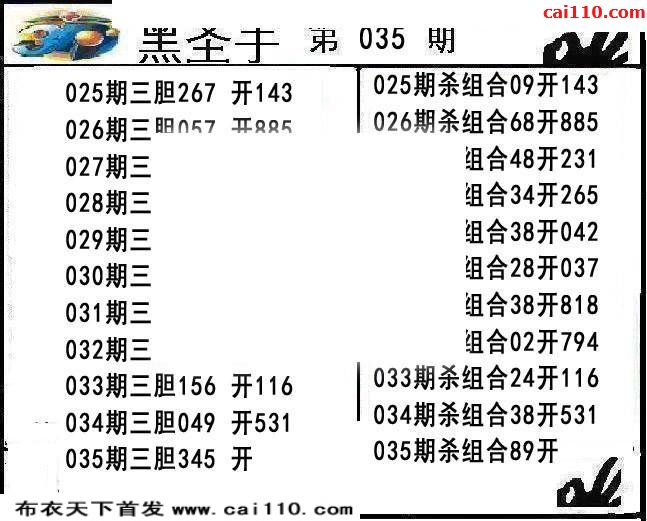 3D黑圣手2020年035期福彩专家送胆