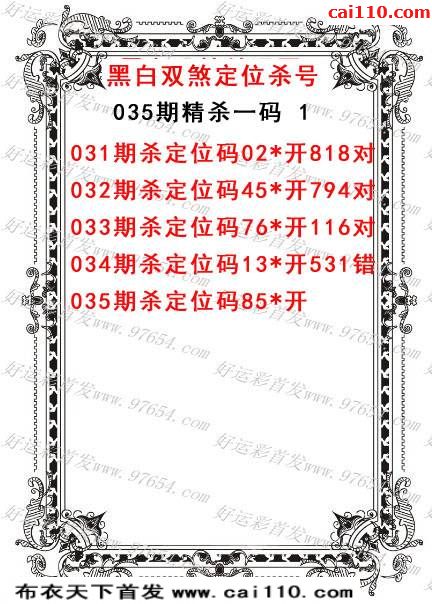 黑白双煞3d2020年035期今日杀码推荐(原创)
