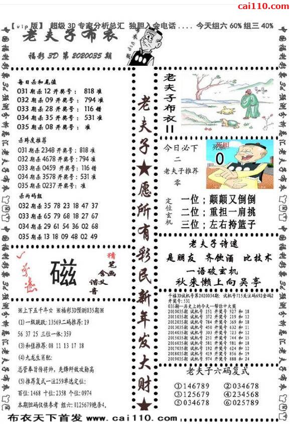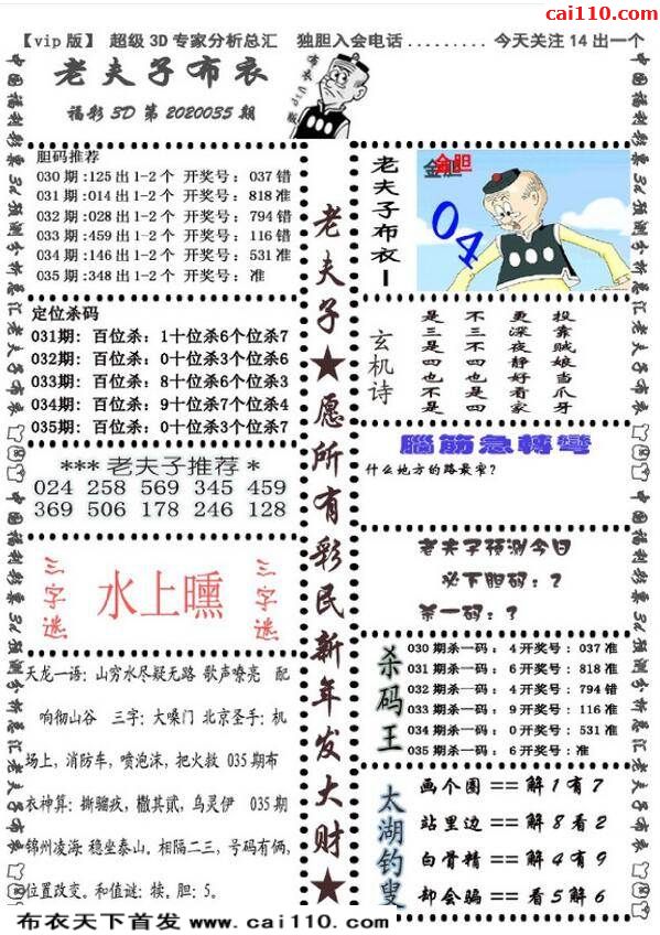 2020年035期福彩3D蓝宝石杀码图谜(原