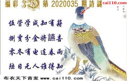 2020年035期福彩3D蓝宝石杀码图谜(原