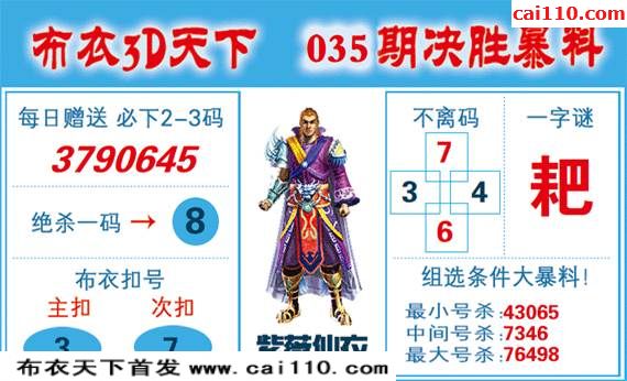 精准布衣20035期福彩皇帝今期3d彩报图