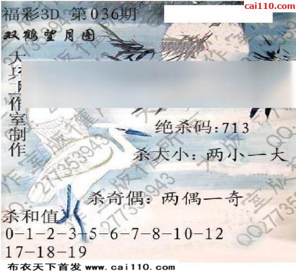 福彩3d20年036期正版杀码图3d图迷