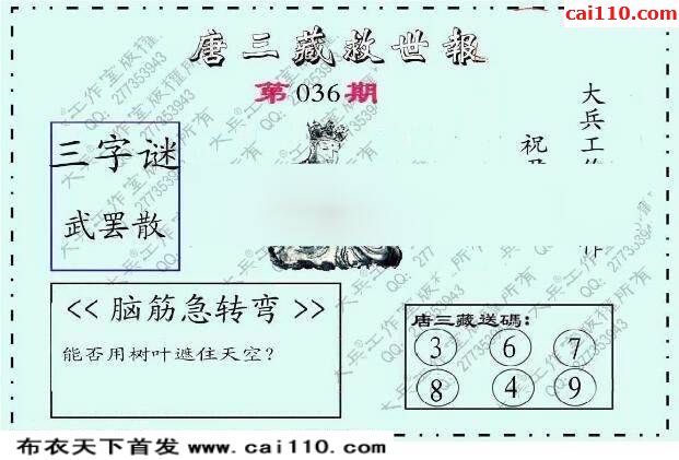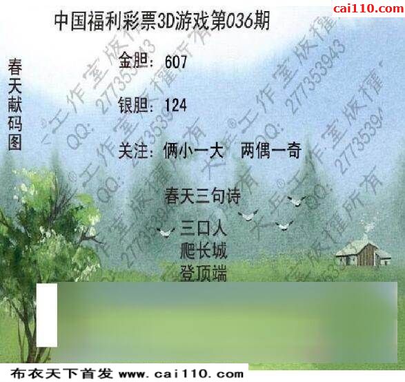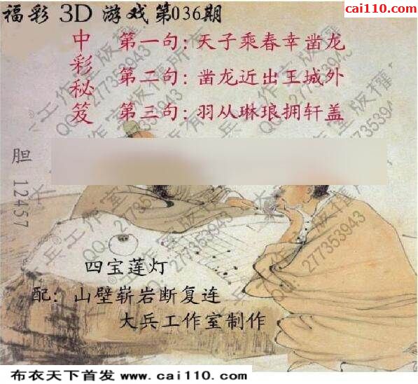 福彩3D20036期天机图谜解三字经明码