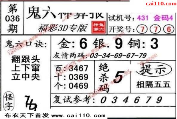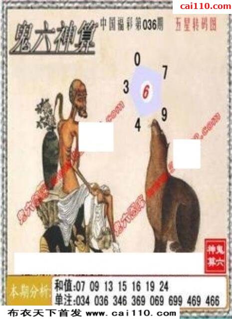 福彩3D20年036期鬼六神算推胆3d图谜