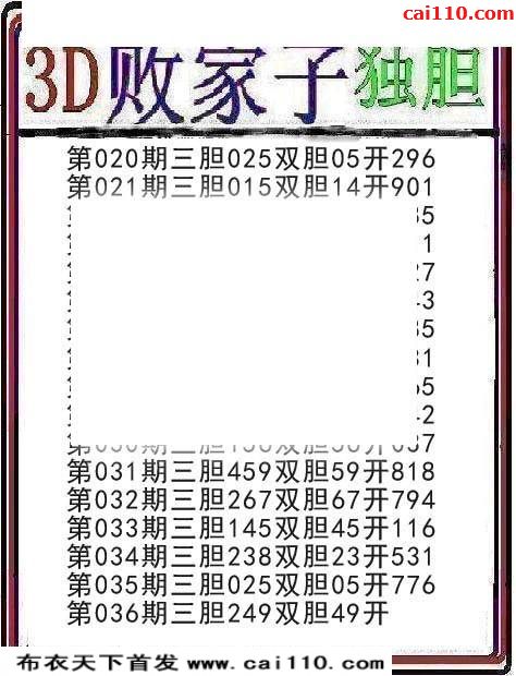 2020年036期福彩3D蓝宝石杀码图谜(原