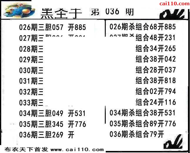 2020年036期福彩3D蓝宝石杀码图谜(原