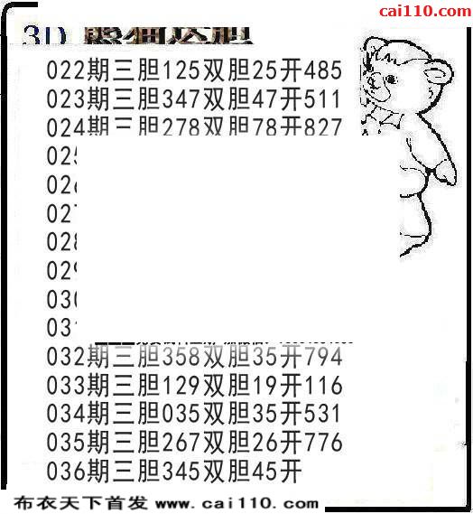 铁人铁胆20年036期正版3d福彩图迷