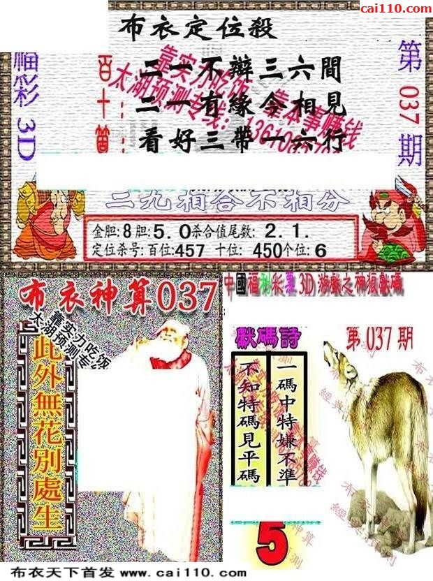 2020年037期福彩3d早版布衣最新三d图