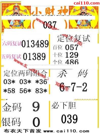 福彩3d20037期天彩财神五码复试3d图迷