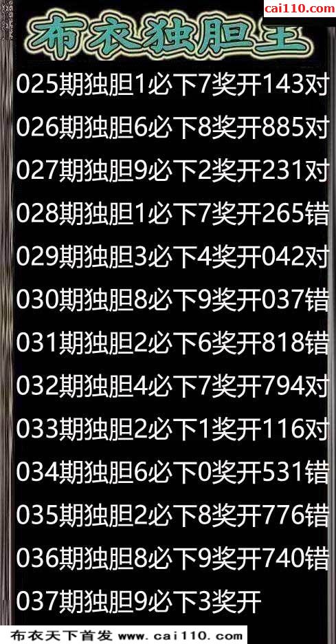 钱王胆码3D20037期布衣天下首发