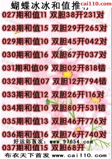 蝴蝶冰冰20年037期3d和值+双胆图(原创