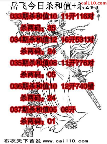 岳飞杀和20年037期+3D绝杀两码(原创)