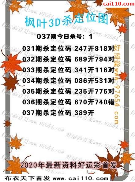 福彩3d2020年037期枫叶杀定位号码(原创)