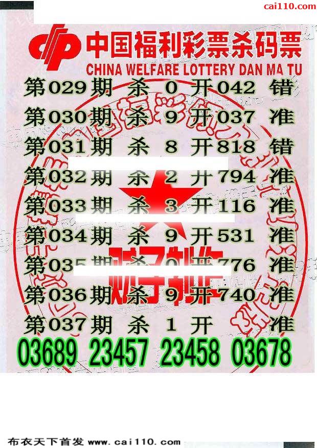 丽人杀码20年3d037期福彩绝杀一码