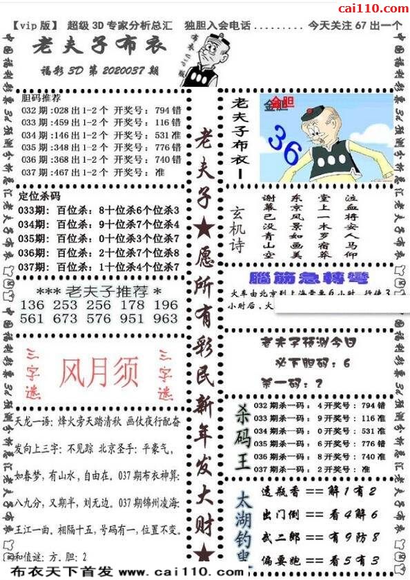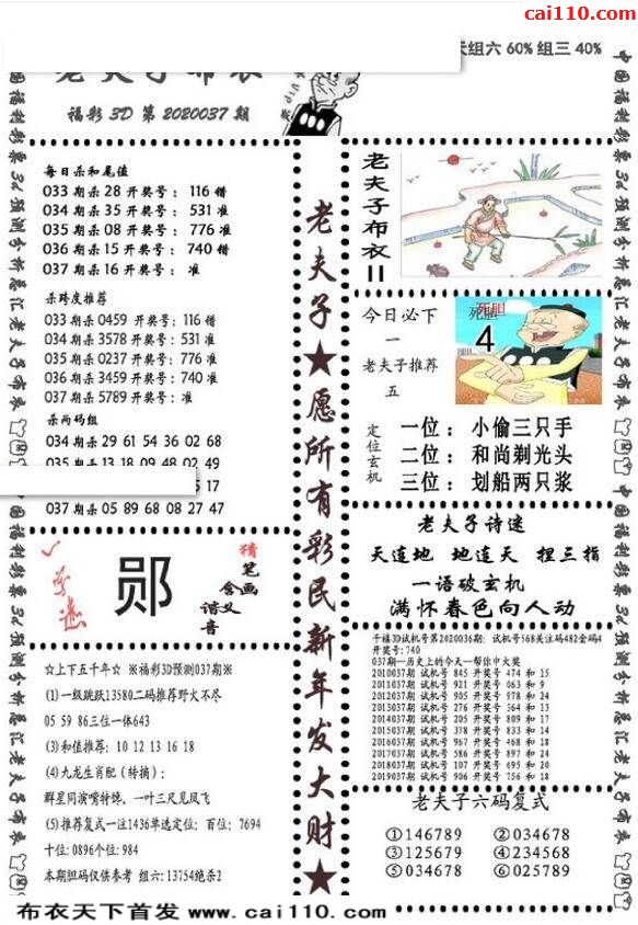 福彩20年037期老夫子布衣最新3d图迷
