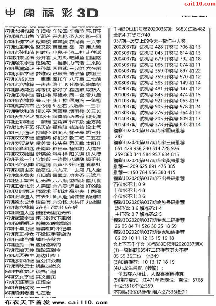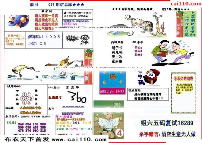 天齐杀码20037期福彩3d原创总汇 杀:0