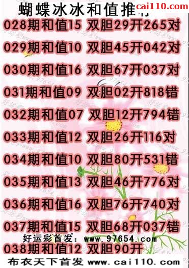 蝴蝶冰冰20年038期3d和值+双胆图(原创