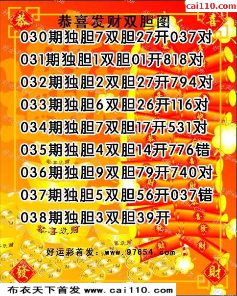 恭喜发财20年038期好运彩胆码图(原创