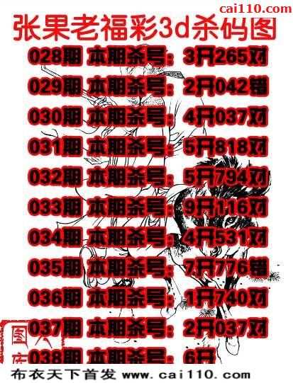 3D张果老2020年038期福彩杀码图(原创