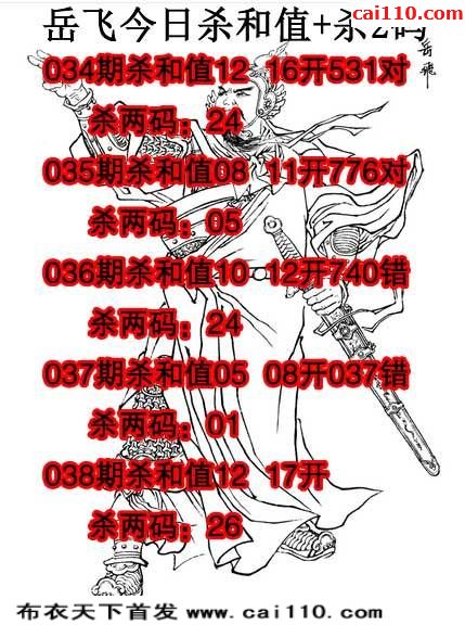 岳飞杀和20年038期+3D绝杀两码(原创)