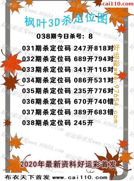 福彩3d2020年038期枫叶杀定位号码(原创)